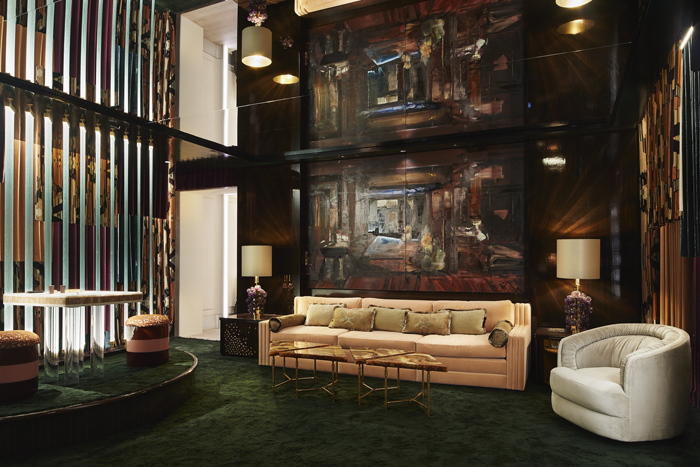 À quelques mètres de là, une tout autre ambiance, celle des années 70, avec sa jet set noctambuliste. Un décor feutré, chargé mais d’une élégance imposante, on reconnait le style de Laura Gonzalez qu’on ne vous présente plus. Oiseaux de nuit qu’on retrouve également dans le Fumoir noctambule de Humbert & Poyet.